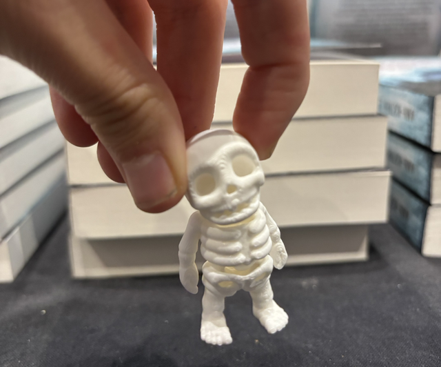 Ein erwachsener Mensch besitzt ca.206 Knochen. Für Krimi Fans gibt es jetzt ein 3D gedrucktes Skelett. Die Wackelfigur ist ca. 5cm groß und weiß. Gedruckt wurde mit dem Filament PLA.